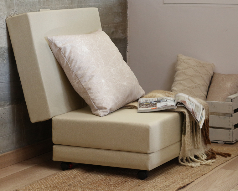 No te dejes engañar por sus formas básicas, porque el Puf Cama 80 es una pieza 100% práctica. Incorpora ruedas y se convertible en cama auxiliar de 180 x 80cm.