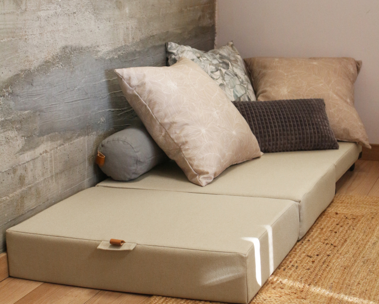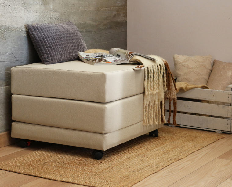 No te dejes engañar por sus formas básicas, porque el Puf Cama 80 es una pieza 100% práctica. Incorpora ruedas y se convertible en cama auxiliar de 180 x 80cm.